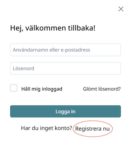 Skapa användarkonto innan kursstart. Du kan göra det under under ”mitt konto” eller i samband med kursköpet under ”Registrera nu”.